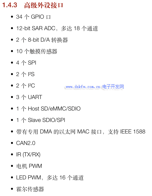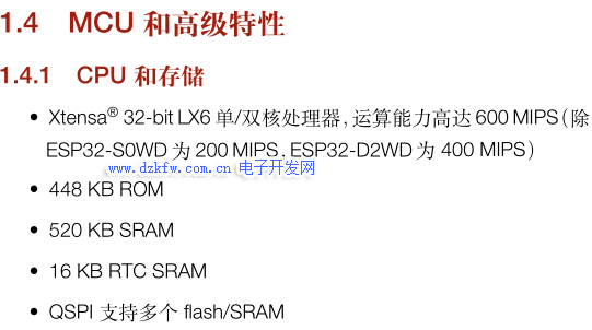 3、速度快!雖然外接晶體的頻率只有40MHZ,但通過(guò)內(nèi)部主頻可以支持80MHZ、160MHZ、240MHZ,運(yùn)算能力高達(dá)600MIPS。