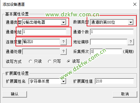 9.在設備編輯窗口中增加一個設備通道,對應PLC的Q1.7,并和變量輸出0關聯起來。