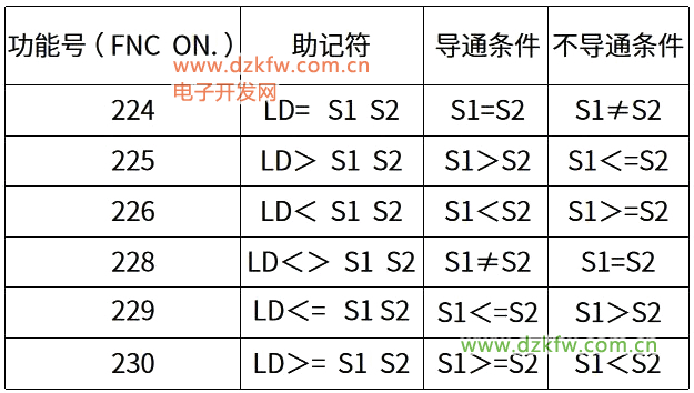 其功能號為232~238,但沒有235,這在其觸點比較指令中也是類似的,從224~230,卻沒有227,別問我為什么,因為我也不知道~