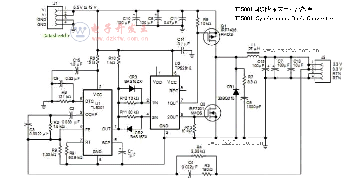 TL5001同步降壓應用,高效率,TL5001 Synchronous Buck Converter