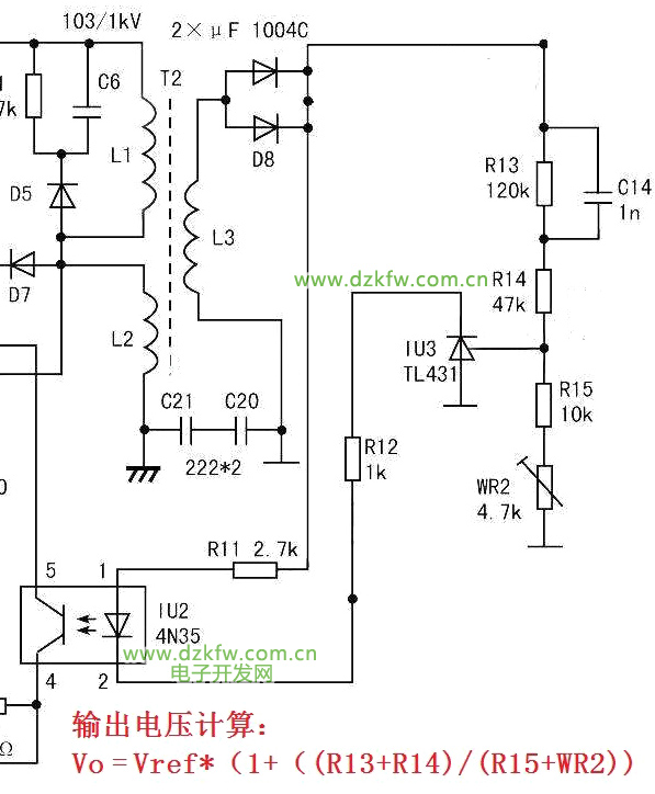 而IU4B被接成了同相放大器結(jié)構(gòu),輸出電壓與電流取樣電壓成比例