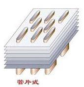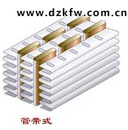 采用冷卻管和散熱帶沿縱向間隔排列的方式,散熱帶上的小孔是為了破壞空氣流在散熱帶上形成的附面層,使散熱能力提高。這種散熱器芯散熱能力強,制造工藝簡單,成本低,但結構剛度不如管片式大,一般多為轎車發動機采用,近年來在一些中型車輛上也開始采用。