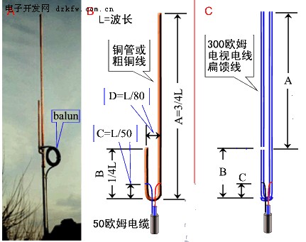 J型天線因制作簡單,取材容易,一直受調頻發射機愛好者青睞,制作時可以選用1 mm左右的空調銅管,按照計算的尺寸制作,無需專業工具制作就能獲很好的效果。如找不到銅管,亦可以用2.5平方的銅線制作。