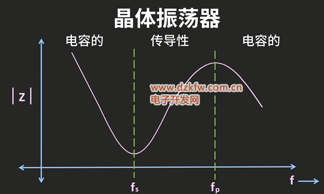 類似于LC諧振電路有自己的諧振頻率,上文所謂的特定頻率就是石英晶體的諧振頻率(固有頻率),而且有兩個(gè),如下圖1-5所示。折兩個(gè)諧振頻率分別為fs和fp,其中fp略大于fs。