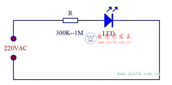 因此,如果是LED燈串聯電阻直接接220V交流電,限流電阻最好選擇300K以上1M以內都是可以正常使用,選的電阻越大,電流越小,LED指示燈越耐用。因為220V交流電的峰值電壓高達310V,最好把LED指示燈的電流限制在1mA以內,反向才不會擊穿,若無亮度要求,電阻越大越好,保守一些最好選擇600K以上。