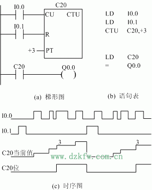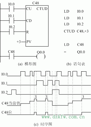 S7—200系列PLC的計數器有3種:增計數器CTU、增減計數器CTUD和減計數器CTD。