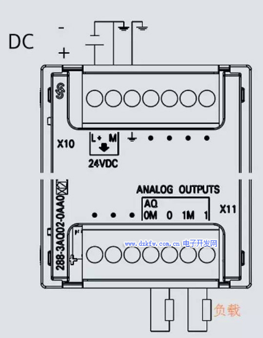模擬量輸出模塊的接線比較簡單,只需要把負載端接入即可。上圖中0M、1M是信號負,另一端是信號正,只要正負不接反是不會出問題的。