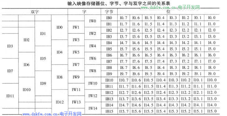 輸入映像存儲器位、字節、字與雙字之間的關系見下面的圖表。