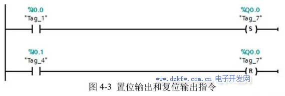如圖4-3所示。 當I0.0的常開觸點閉合時,Q0.0變?yōu)?狀態(tài)并保持該狀態(tài)。 即使I0.0的常開觸點斷開,Q0.0也保持1狀態(tài)。 當I0.1的常開觸點閉合時,Q0.0變?yōu)?狀態(tài)并保持該狀態(tài)。 即使I0.1的常開觸點斷開,Q0.0也保持0狀態(tài)。