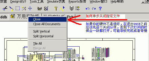 5.關閉PROTEL99SE時的技巧,如果你的電腦配置一般,分步的關閉可以避免死機和丟失你的成果