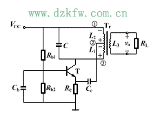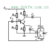 | 圖1 為共基極電感三點(diǎn)式LC振蕩電路。電感線圈L1和L2是一個線圈,2點(diǎn)是中間抽頭。如果設(shè)某個瞬間集電極電流減小,線圈上的瞬時極性如圖所示。反饋到發(fā)射極的極性對地為正,圖中三極管是共基極接法,所以使發(fā)射結(jié)的凈輸入減小,集電極電流減小,符合正反饋的相位條件。圖2是共射極電感三點(diǎn)式LC振蕩電路。 |