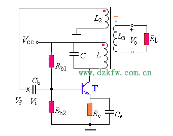 L相耦合,將反饋信號(hào)送入三極管的輸入回路。交換反饋線圈的兩個(gè)線頭,可改變反饋的極性。調(diào)整反饋線圈的匝數(shù)可以改變反饋信號(hào)的強(qiáng)度,以使正反饋的幅度條件得以滿足。有關(guān)同名端的極性請(qǐng)參閱圖2。