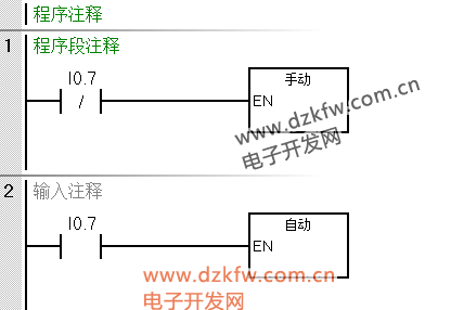 例:手自動轉換,手動自動轉換開關I0.7;(0手動,1自動)