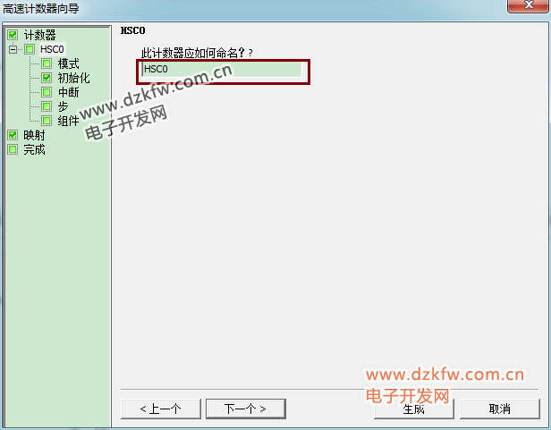3.當前值等于預置值時產生的中斷,通過向導,可以在該中斷的服務程序中重新設置高速計數器的參數,如預置值、當前值。一個這樣的過程稱為‘一步‘。