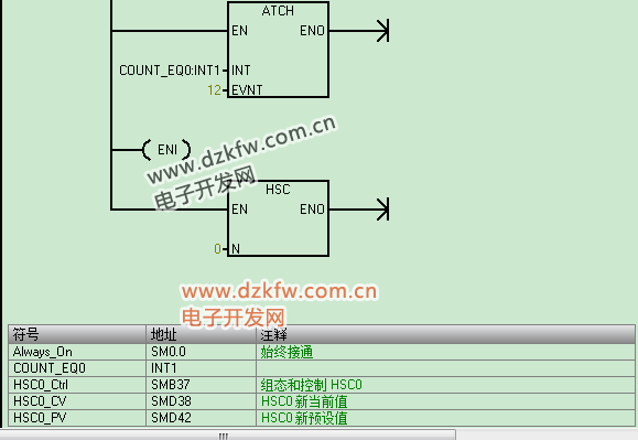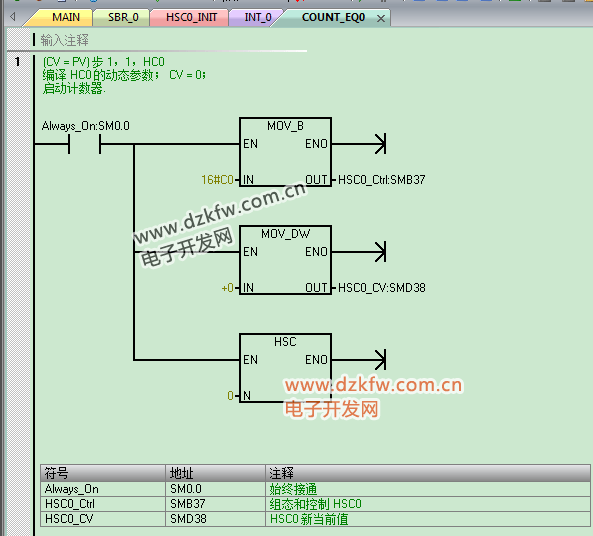 HSC_INIT 為初始化子程序,請在主程序塊中使用 SM0.1 或一條邊沿觸發指令調用一次此子程序。