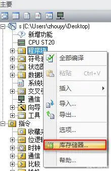 4、鼠標選中程序塊文件夾,單擊右鍵,下拉菜單中選擇庫存儲器,如下圖所示。