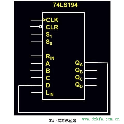 用194可以做很多事情,如典型的環形移位器、扭環形移位器,其邏輯圖如下圖4所示: