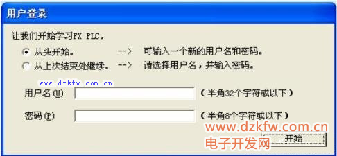 在啟動畫成時,會出現一個登錄窗口,你可以輸入一個用戶名和密碼,做為你學習的一個記錄。一般,沒必要設置,只要點開始就可以進行學習了。