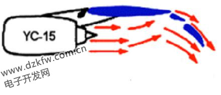 YC-14利用的康達效應,在飛機設計上也叫外吹襟翼增升技術。外吹,既可以往機翼上表面吹,也可以往機翼下表面吹。就像YC-15那樣: