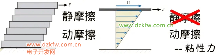 進一步說明前面提到三種種力的區別:附著力是一種靜態力,存在于固體或液體的接觸面;表面張力也是一種靜態力,存在于液體自由表面;粘性力是一種動態力,存在于發生持續剪切變形的流體內部。