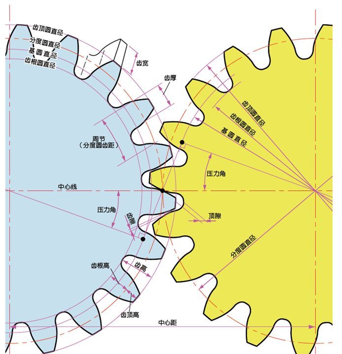 齒輪的齒高方向也有空隙。這個空隙被稱為頂隙(Clearance)。頂隙(c)是齒輪的齒根高與相配齒輪的齒頂高之差。