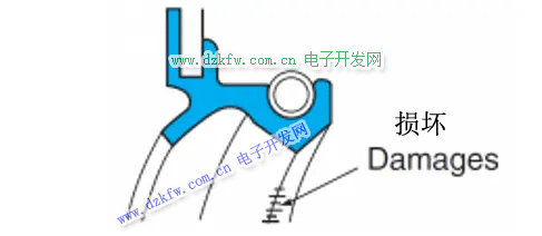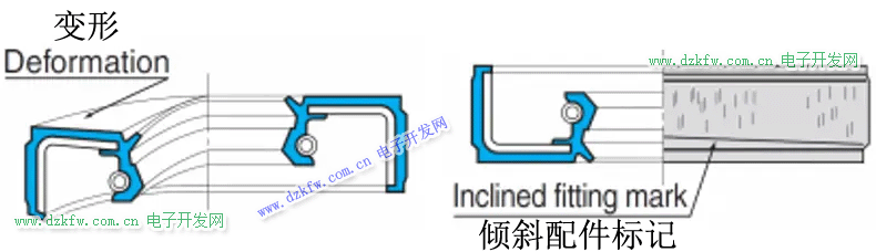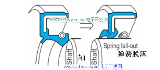 軸上存在花鍵或鍵槽,裝入油封時(shí)未采用保護(hù)罩而被刮傷