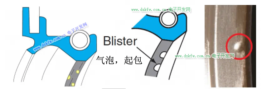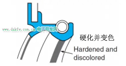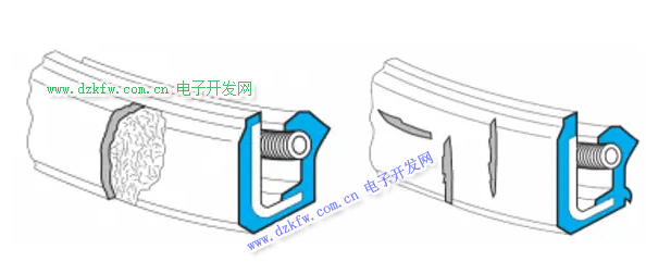 唇口與潤(rùn)滑油接觸一段時(shí)間后,出現(xiàn)的一種腫脹、波浪化現(xiàn)象。注意密封材料與潤(rùn)滑劑的匹配性。