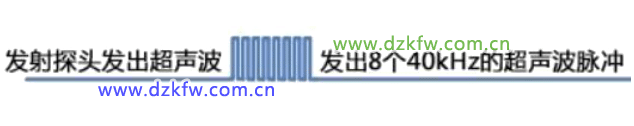 (2)傳感器被觸發后,發射探頭發出8個40KHz檢測超聲波脈沖,接收探頭自動檢測回波信號