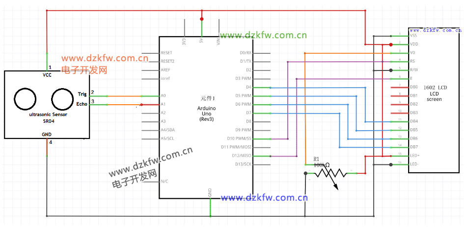 步驟2:數字顯示超聲波測距程序代碼實現功能:超聲波測距;1602 LCD實時顯示測定距離的值