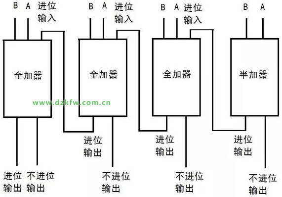 用2個8位加法器串聯(lián)就可以構成16位加法器。至此,我們就清楚了邏輯門構成加法器的原理,從而也就理解了邏輯門完成計算的基本原理。但是請讀者們務必注意,以上的描述只是邏輯門完成計算的基本原理,實際過程要復雜許多。