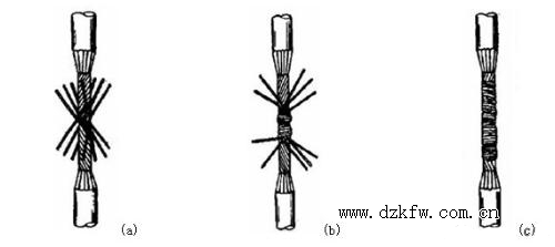 通常多股電線接頭都是下圖這樣的接法,才能保證電線接頭不發(fā)生打火、短路,與接觸不良的現(xiàn)象。分組、纏繞、鉸接。