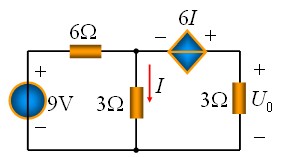 由電路聯(lián)接關(guān)系得到,Uoc=6I+3I,求解得到,I=9/9=1A,所以Uoc=9V