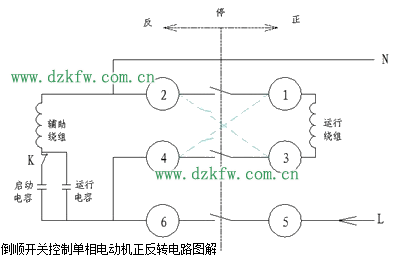 反轉時電流方向:L>>>5>>>6>>>4>>>1>>>運行繞組>>>3>>>2>>>N