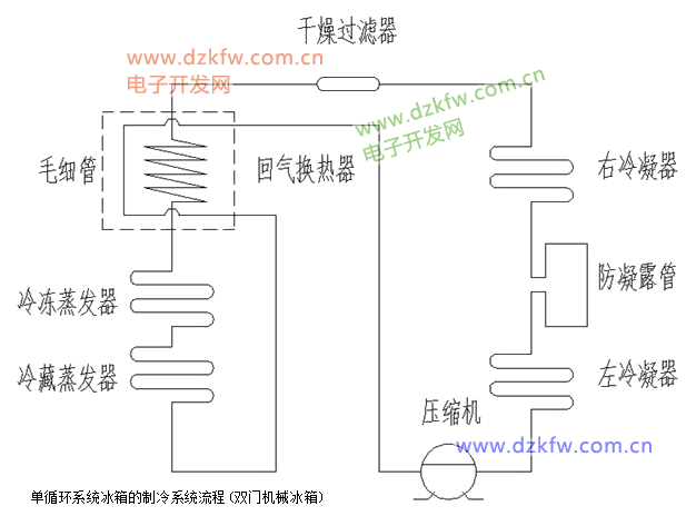 單循環系統冰箱的制冷系統流程(雙門機械冰箱)