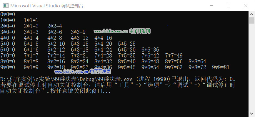 //-----------------------【以下是我的代碼文件:】--------------------- /********************************/ /*文件名:99乘法表 . 用C語言編寫99乘法表 */ #includeint main() { int sum; int i, j; for (i = 0; i < 10; i++) { for (j = 0; j < 10; j++) { if (j <= i)//防止輸出兩遍 { sum = i * j; printf("%d*%d=%d\t", i, j, sum); } } printf("\n"); } return 0; }